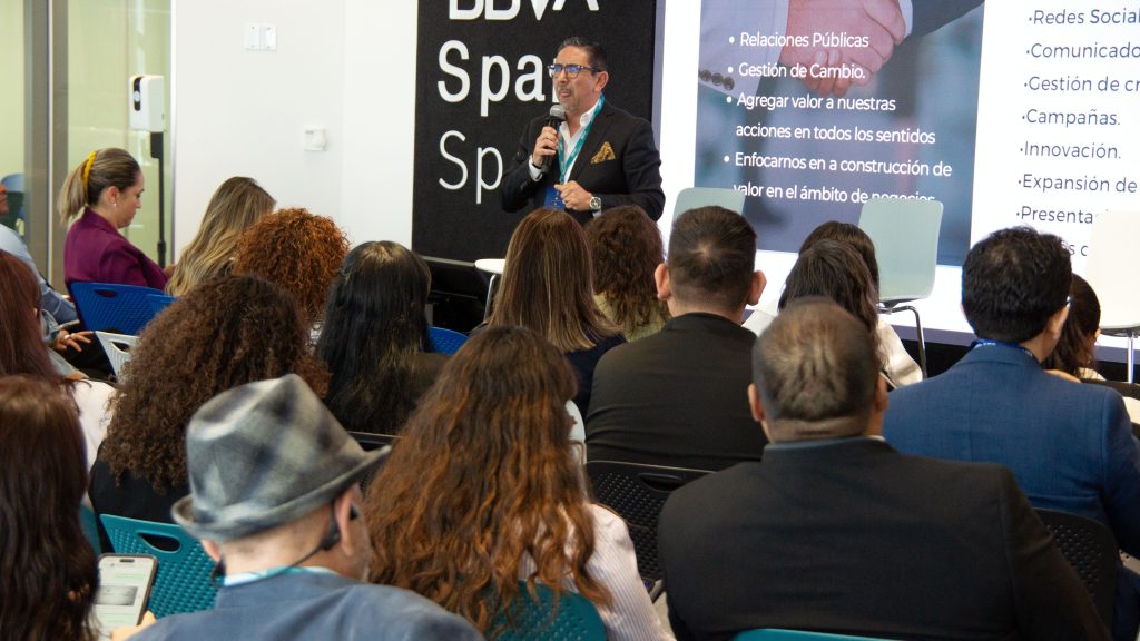 La tercera conferencia estuvo a cargo de Víctor Enríquez, Subdirector de Relaciones Gubernamentales e Institucionales en Grupo Expansión, con el tema “Cómo construir relaciones de valor en tiempos de cambio”. Enríquez habló sobre el poder de las relaciones públicas y humanas como una vía para generar confianza y colaboración en entornos complejos. Su mensaje central fue claro: solo un 3 % de las personas deja una huella real en la vida de los demás… y cualquiera de nosotros puede aspirar a ser parte de ese porcentaje.